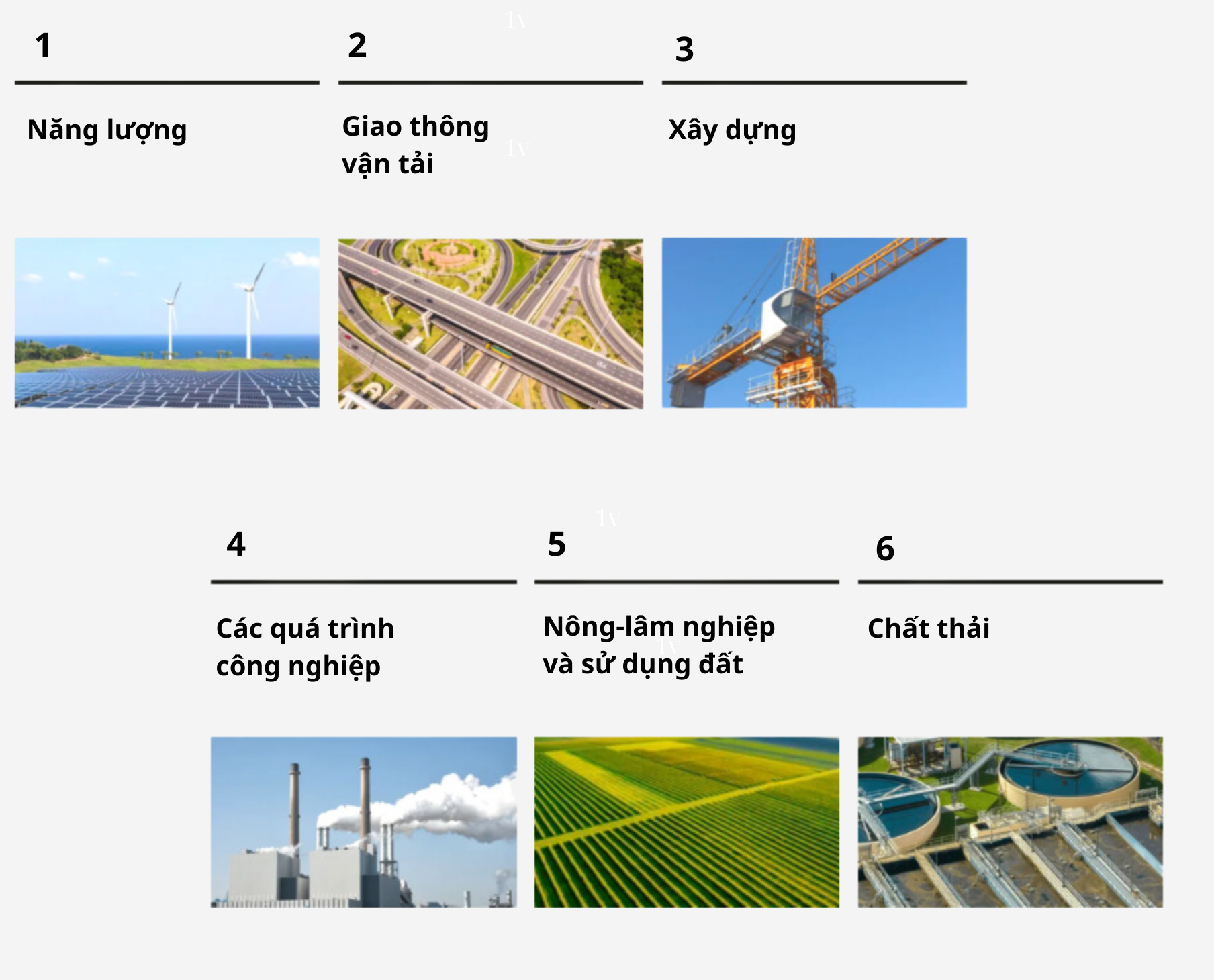 Danh mục lĩnh vực, cơ sở phải kiểm kê khí nhà kính gồm: