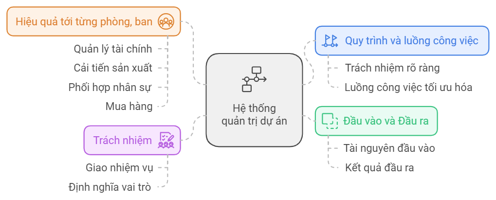 - Một hệ thống quản lý dự án tốt bắt đầu từ việc thiết lập quy trình và luồng công việc chi tiết. Điều này bao gồm: